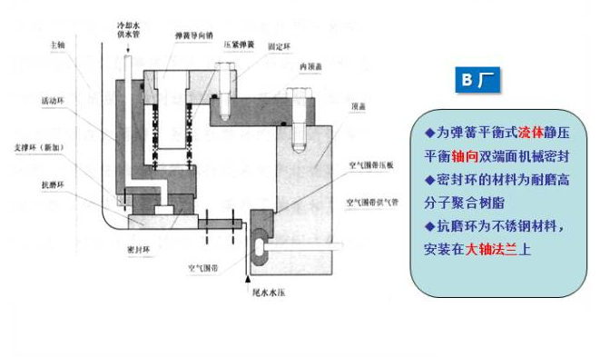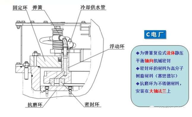 主要由活动环、固定环、密封环、旋转抗磨环、压紧弹簧及冷却水系统等组成。